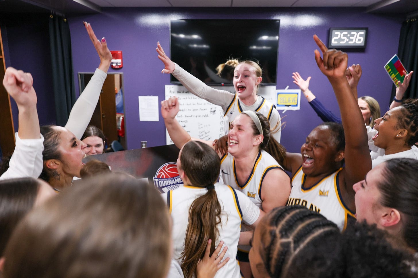 The jubilant Racers celebrate their 96-90 win over Drake in the Valley Tournament semifinals. (Photo: David Eaton/Murray State Athletics) Here’s the ‘Ride Home’ podcast after Murray State beat Drake on Saturday', 96-90, to advance to Sunday’s Missouri Valley Conference championship game.