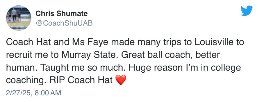 Former Murray State guard Chris Shumate, who is now an assistant coach at UAB, remembered Hatfield on Thursday on X.