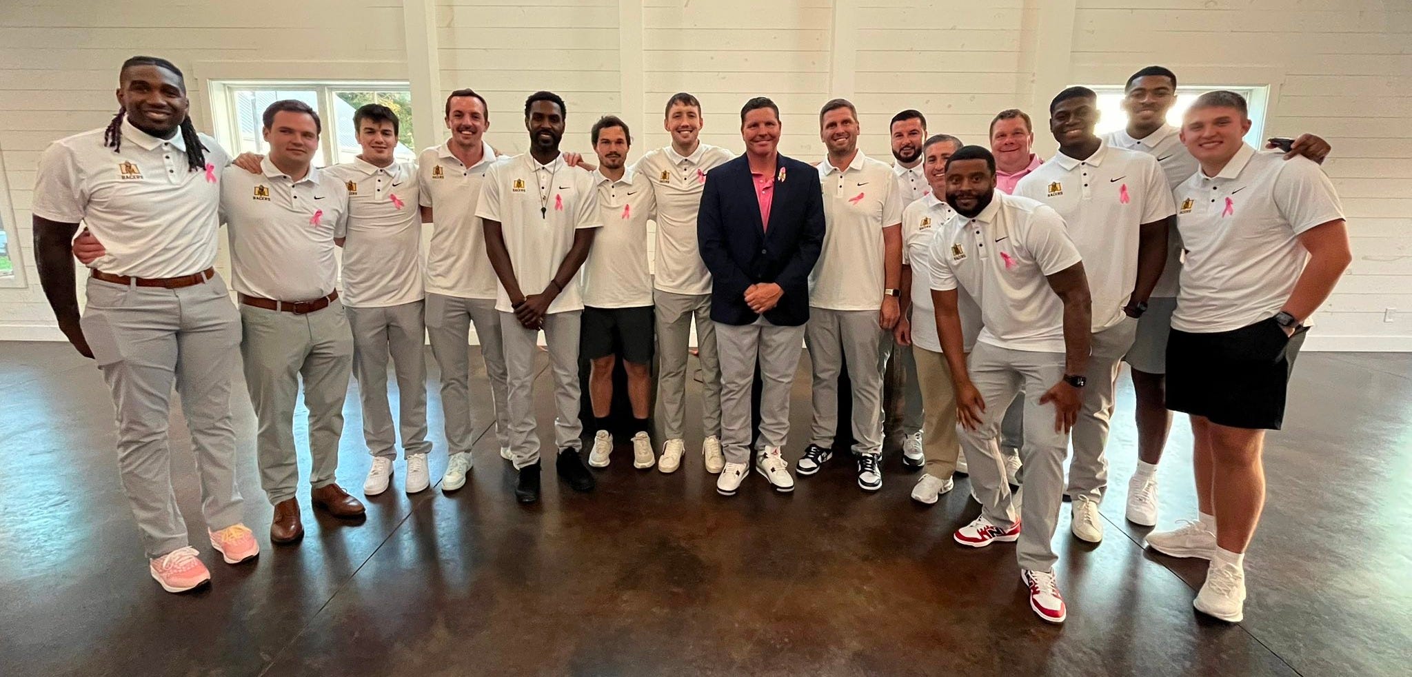 Murray State Head Coach Ryan Miller, along with his entire coaching staff, attended the ‘Men In Pink’ kickoff event at The Barn at White Oaks in Murray on Tuesday night.