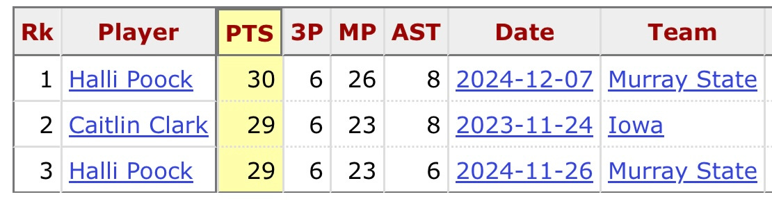 After helping Murray State to a pair of wins last week, sophomore guard Halli Poock is this week’s Missouri Valley Conference Player of the Week.